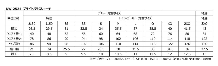 (ゴールド)SS・S・M・L・O・XO・2XO