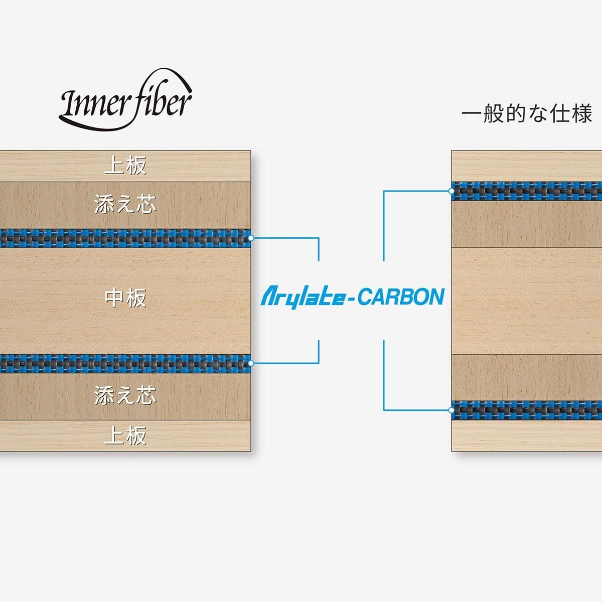 ★ブレード構成:木材5枚合板 + アリレート カーボン2枚[インナーファイバー®]
