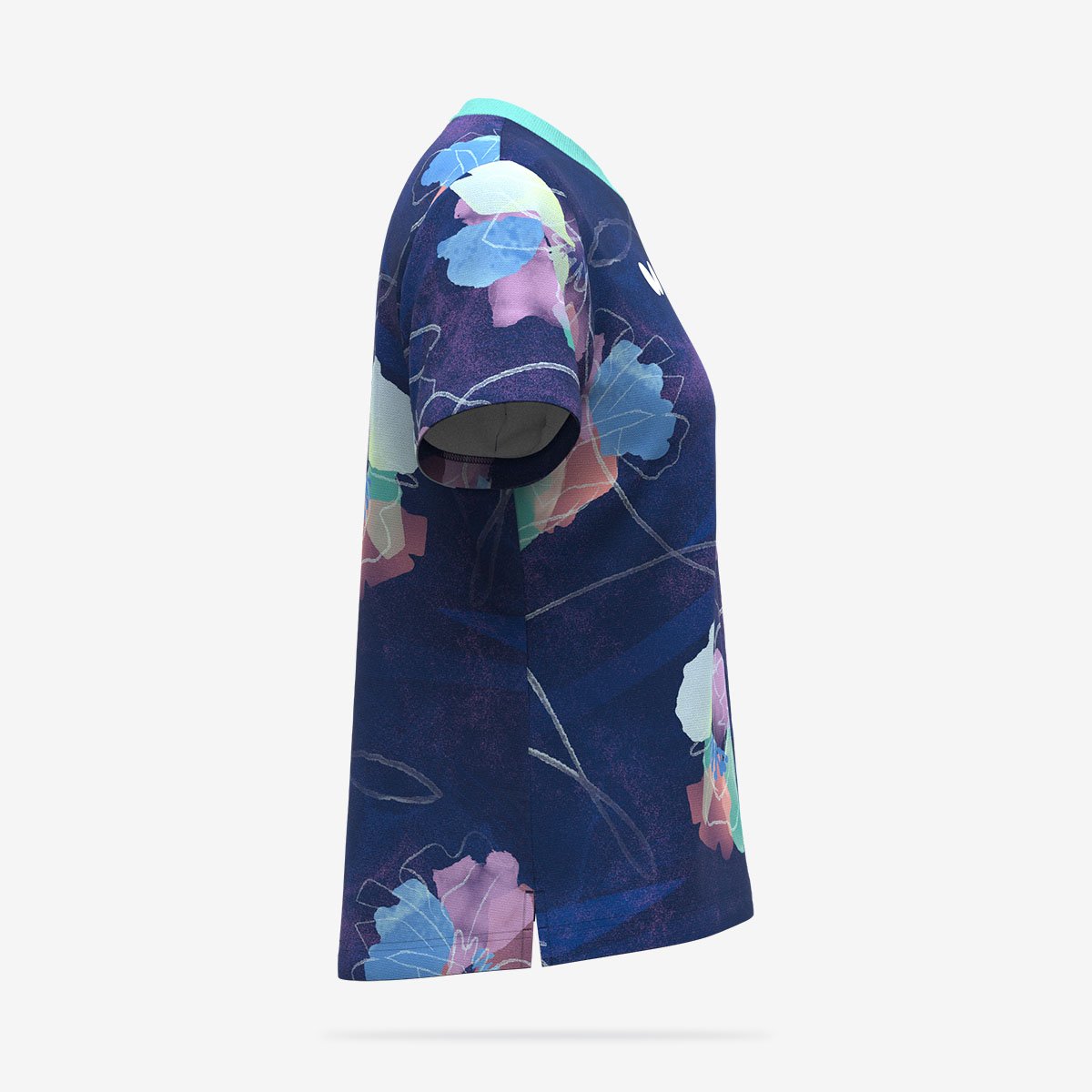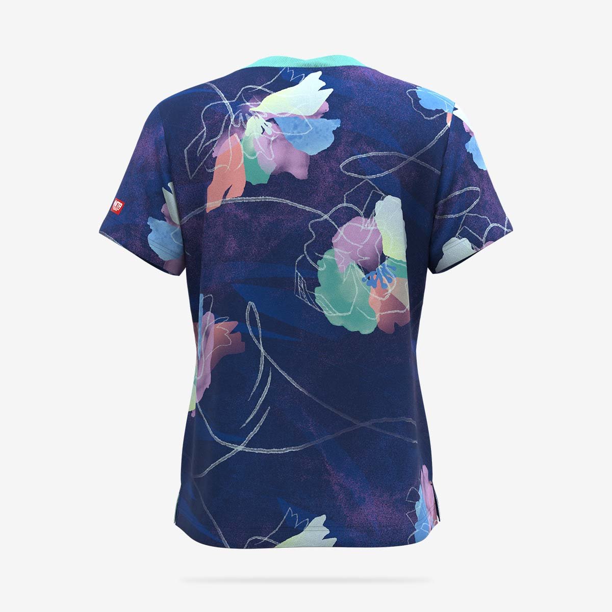 水彩タッチのにじみと繊細かつ大胆なストロークが調和した、花柄のレディース用ゲームシャツです。